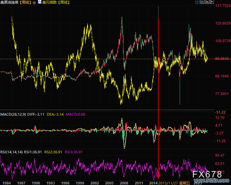 同期笔者还有一个发现,便是好意思元指数和原油价钱的关系,不时好意思元指数与油价是负干系,因为好意思元是原油的计价单元,然则市集偶而会出现好意思元与石油价钱呈正干系的技术。